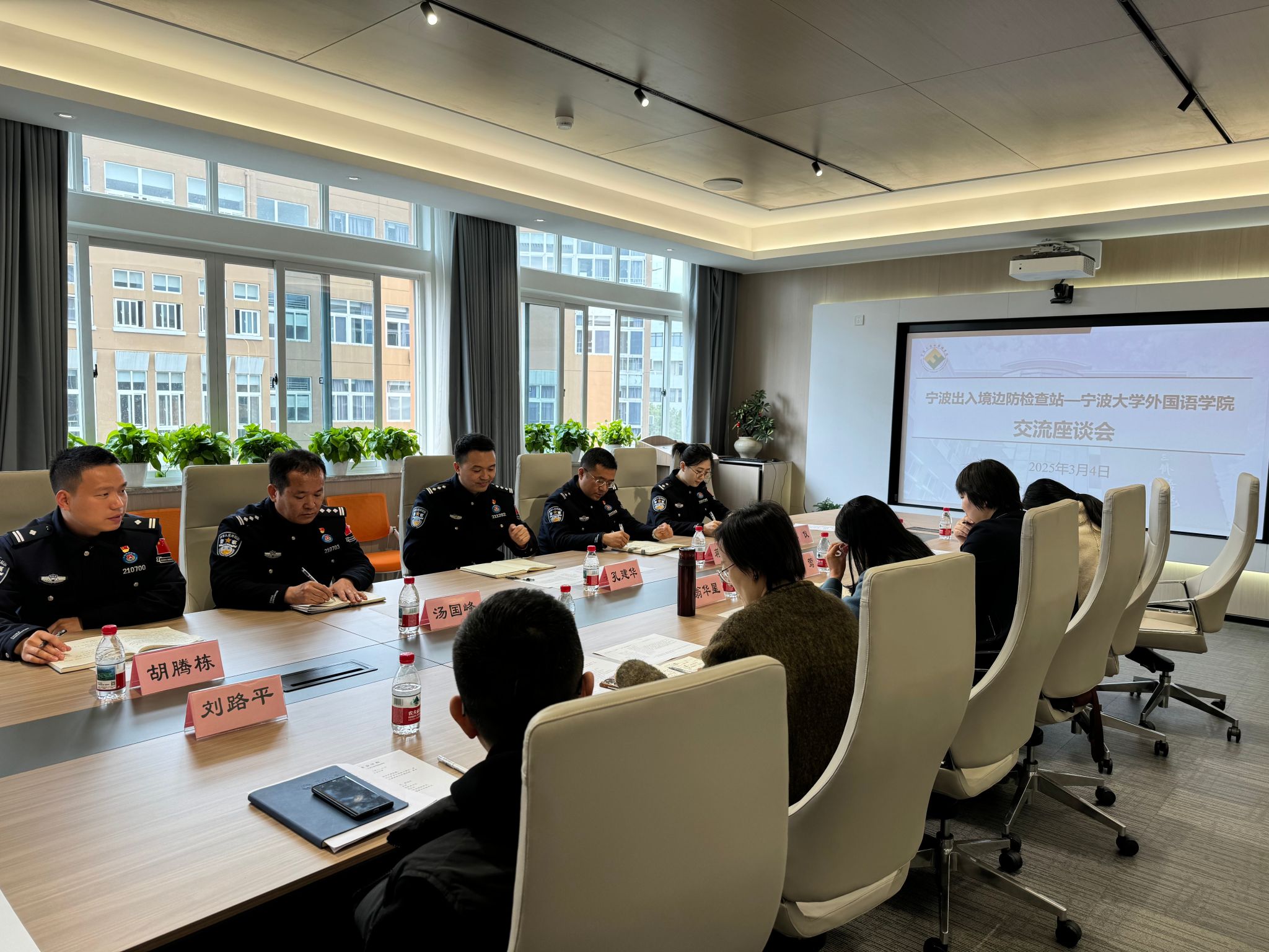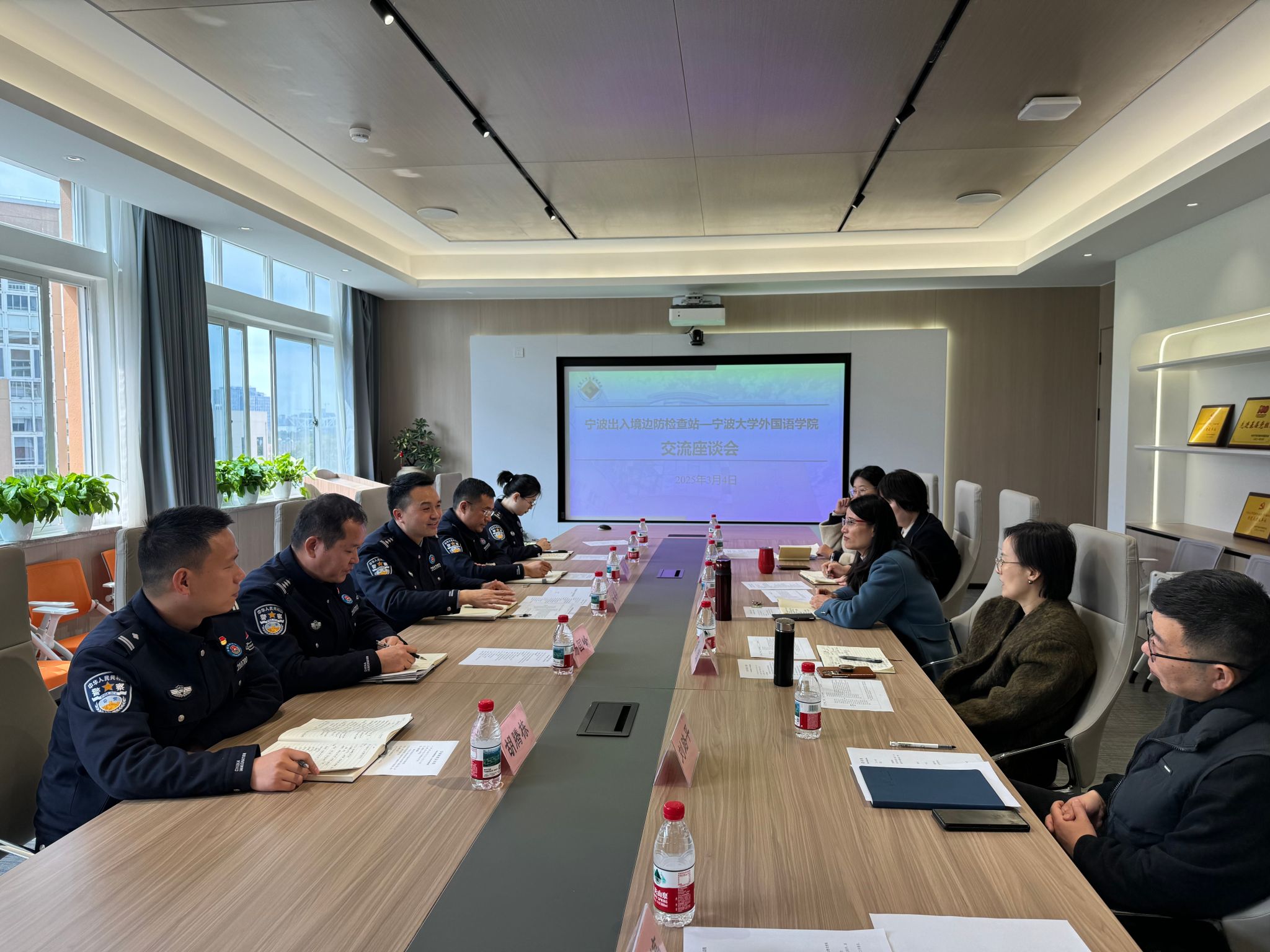 在自由讨论环节,双方具体围绕宁波边检站全站英语听说能力培训、涉外法治实践站实践、边检岗位学生暑期涉外环境体验、青年联谊、外事交流等主题达成了多项合作意向。双方拟于3月底签订相关合作协议,开展联建活动。