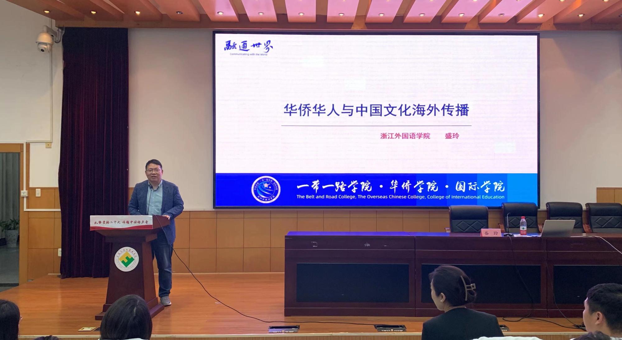 202359日晚,浙江外国语多米体育网 “一带一路”多米体育网 、华侨多米体育网 、国际多米体育网 党总支书记、副院长、副教授盛玲一行莅临外国语多米体育网 交流指导,并在218报告厅为多米体育网 分党校学员主讲题为“华侨华人与中国文化海外传播”的党课。