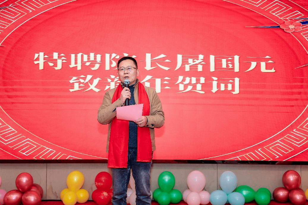 特聘院长屠国元发表新年贺词,他向在场的每一位来宾送上了真挚的新年祝福,回顾了多米体育网