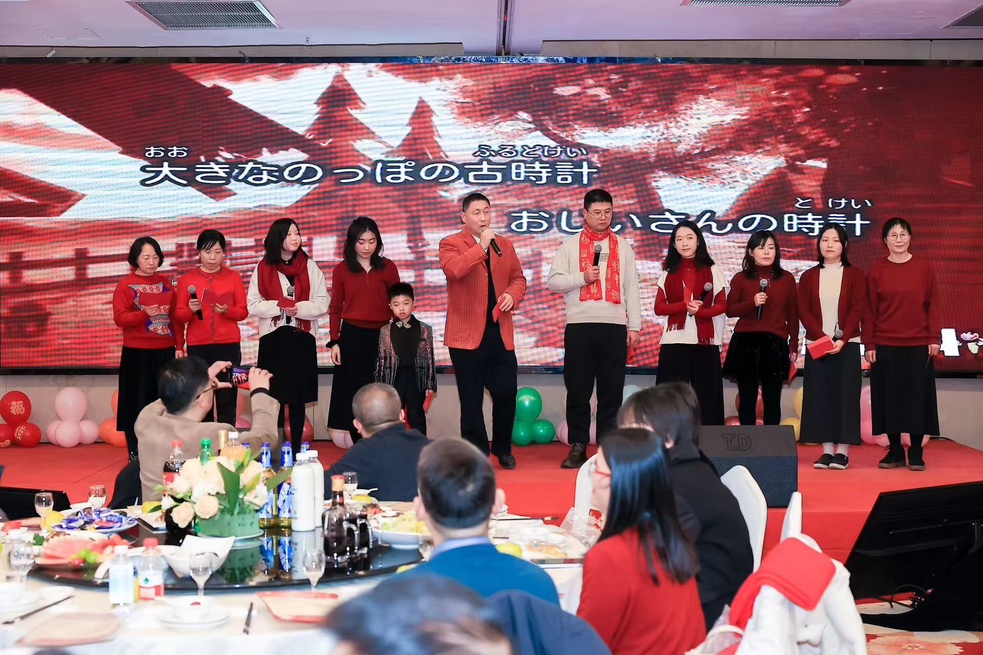 歌曲节目也是精彩纷呈,引人瞩目。大外部全体教师带来的合唱《小美满》,在邢志祥、熊艳、苗丽霞三位老师的深情领唱下,歌声如潺潺溪流般温暖动听,洋溢着满满的幸福与美好,传递出对生活的热爱与憧憬。退休教师刘兰萍登台演唱经典曲目《巴比伦河》,仿佛带着时光的印记,带领现场观众一同回溯往昔,沉浸在经典旋律所营造的美好回忆之中。学工办的景颢老师则以一首《贝加尔湖畔》惊艳全场,其歌声悠扬空灵,细腻的嗓音将歌曲中的浪漫与诗意展现得淋漓尽致,让听众仿若置身于贝加尔湖畔那如诗如画的美景之中,感受着微风轻拂的惬意。研究生会主席夏晓妤以一首《当你老了》触动了在场人们的心弦。日语系的杨建华、周知、宋姗姗、刘梦如、蔡凤香、刘永岚、外教佐佐木天珠等老师,以及携带孩子的李润泽老师、退休教师朴东兰、牛伶俐带来了动听的日语歌曲,他们用精湛的演绎展现出独特的异国风情和多元的文化魅力,为这场音乐盛宴增添了一抹别样的色彩。彩蛋节目同样令人期待,丁玉龙老师与方军林校友的爱女丁方媛小朋友为现场观众带来舞蹈《纳可罕》。小舞者以潇洒利落、充满力量感与节奏感的舞步,将蒙古族舞蹈的韵律美展现得淋漓尽致,每一个动作都仿佛在诉说着古老而悠长的故事,令人叹为观止。