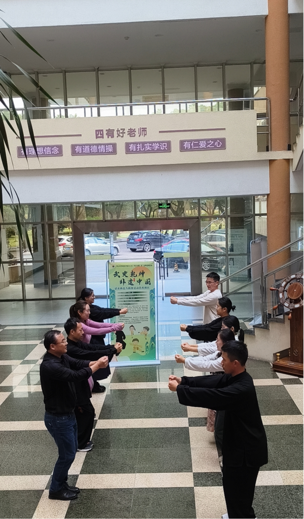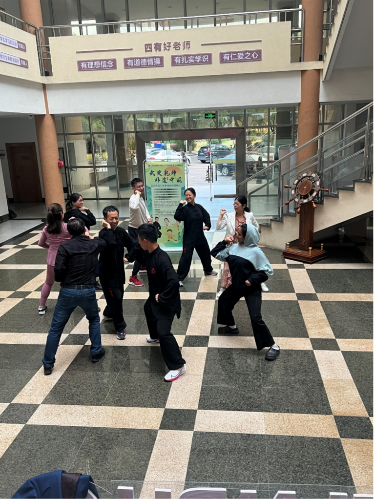 在基本招式动作的学习之后,老师们互相交流探讨,相互“切磋”,在欢畅的氛围中既锻炼了身体,又放松了心情。