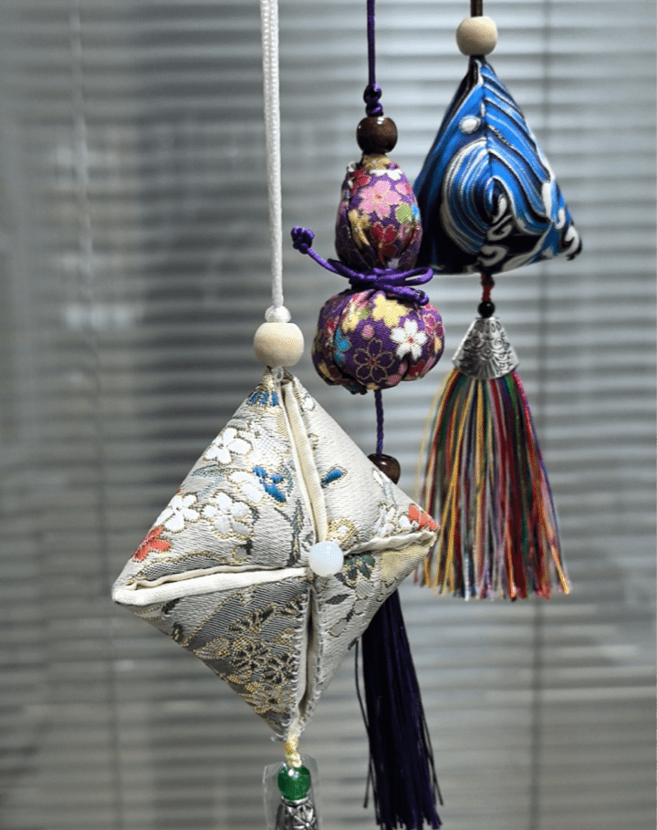 虽然大家都表示是第一次做香包,但是在制作过程中也还在互相传授经验,比如要用什么缝制技巧,才能使得香包缝起来好看呢?布袋和珠串之间怎样搭配才好看呢等等一系列问题。最终,在大家的共同努力下,都制作出了非常精美的香囊,有葫芦形状的、菱形的、粽子形状的等等各种各样的香囊。