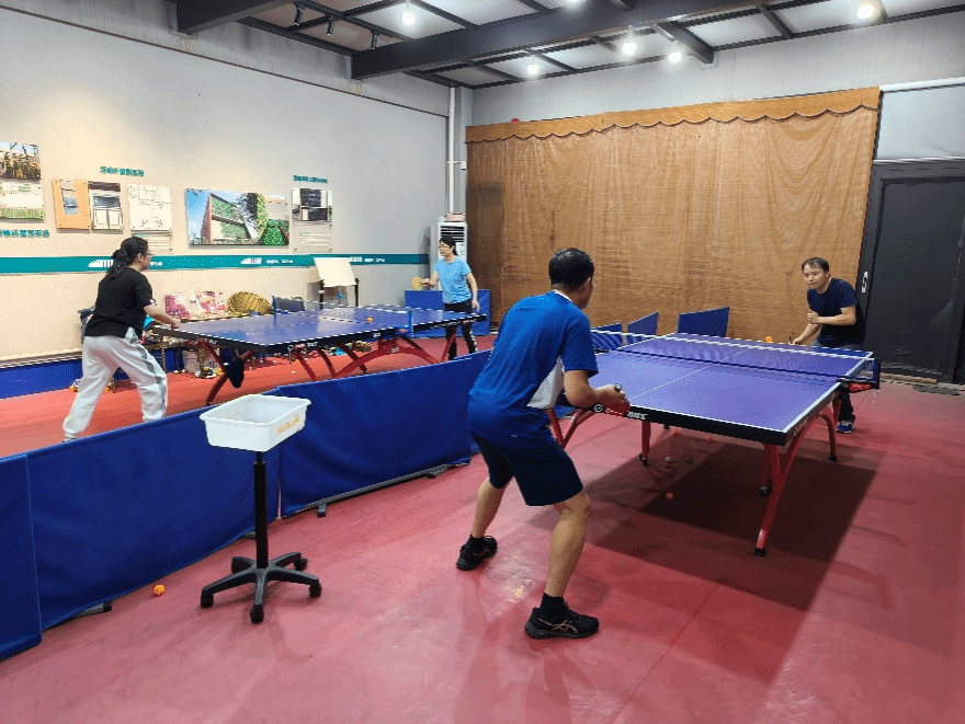 科技产业园乒乓球室,开展教职工的乒乓球训练活动。协会特别邀请了多米体育网