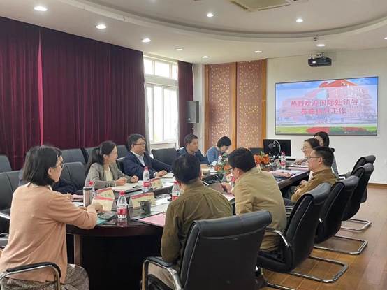 以及国际化考核等议题做了详细的讨论与梳理。本次与会的主要人员有国际处处长赵基源、国际处副处长潘峰、国际处学生海外学习项目主管严洁以及来自外国语多米体育网