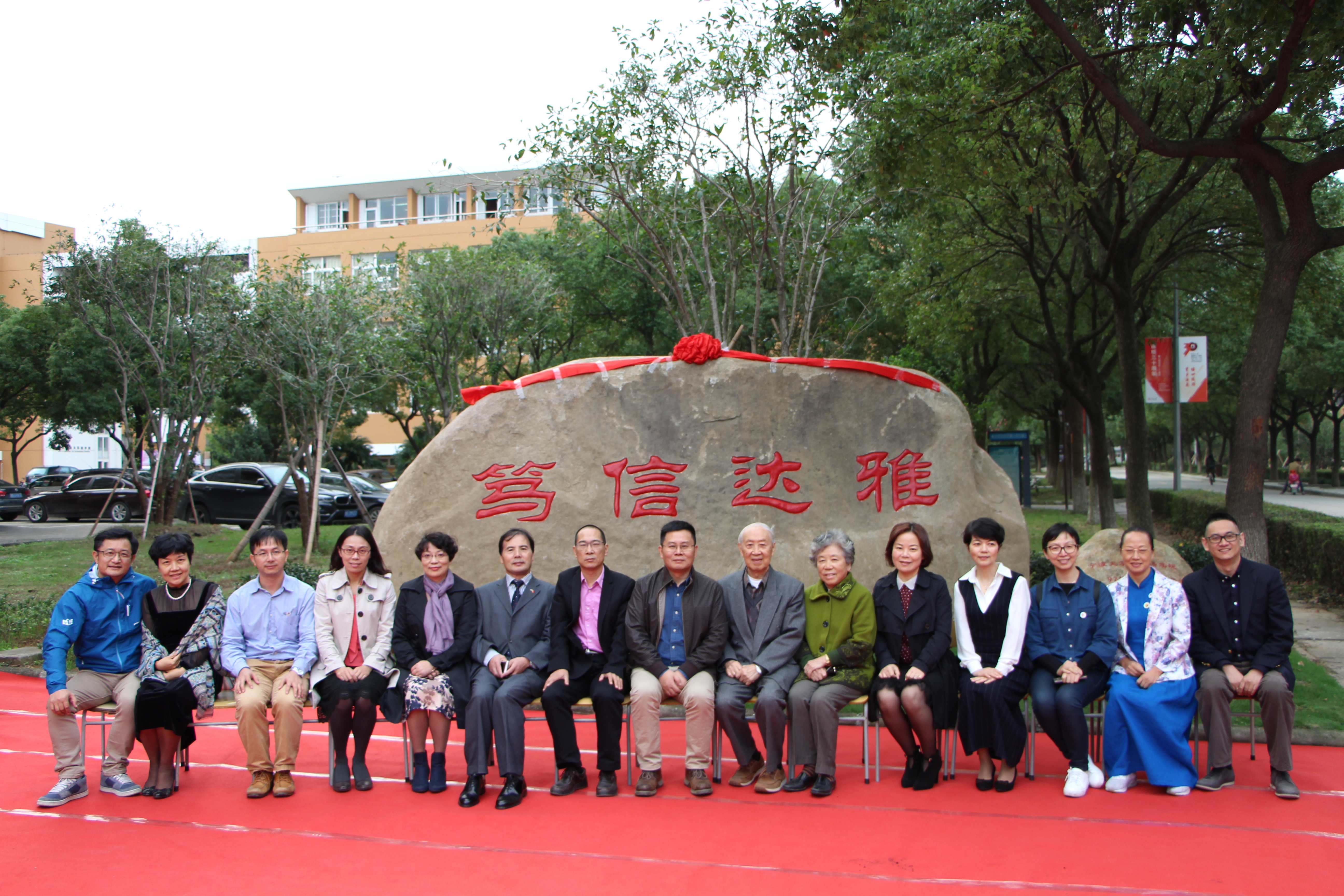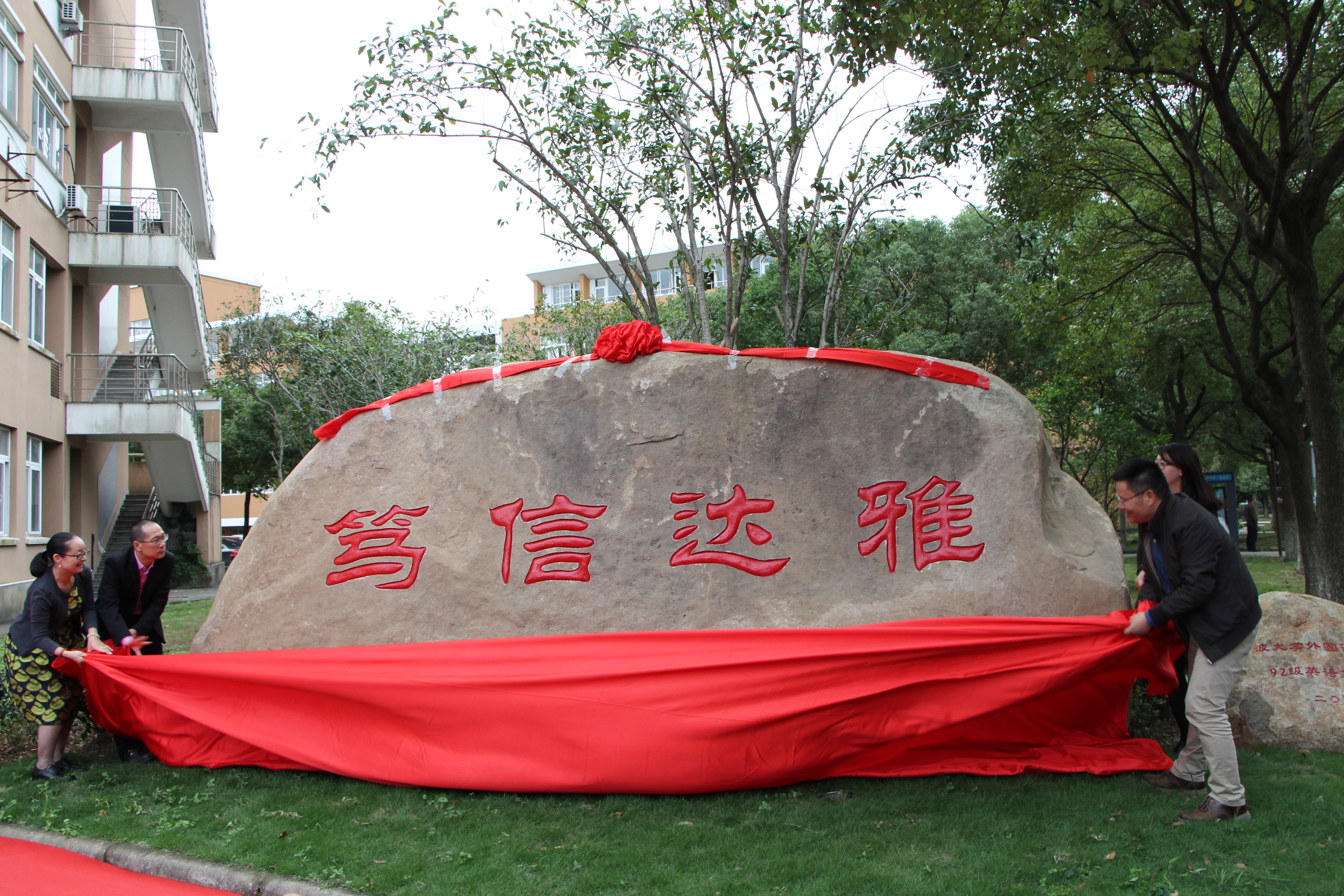 16点,外国语多米体育网 “笃信达雅”院训石揭幕仪式在多米体育网 小广场举行。多米体育网 领导班子成员、原外语系系主任胡荣昌、原外语系退休教师冯韵芳、各届校友代表以及多米体育网 师生代表参加揭幕仪式。院长屠国元致辞,介绍“笃信达雅”院训的来历和寓意并对捐赠院训石的多米体育网 1992级英语全体校友表示感谢;多米体育网 党委书记段汉武介绍了院训石捐赠过程;1992级英语校友胡英杰代表全体校友发言;最后屠院长、段书记以及两名92级英语的校友代表为“笃信达雅”院训石揭幕,并在院训石前合影留念。