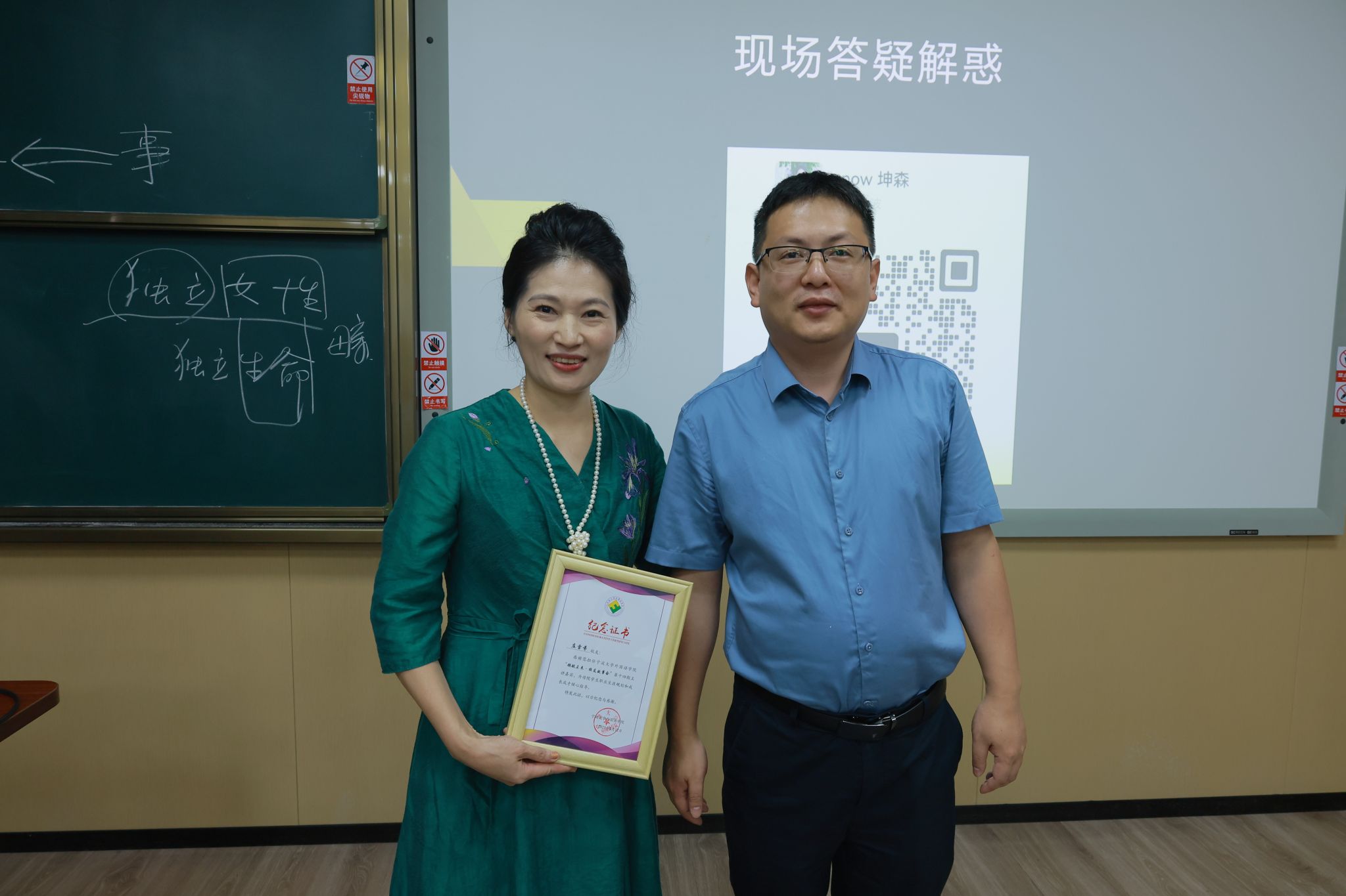 向庄雪芬校友送上精心准备的荣誉证书,衷心感谢她拨冗重返母校,为学弟学妹们带来真挚的分享。