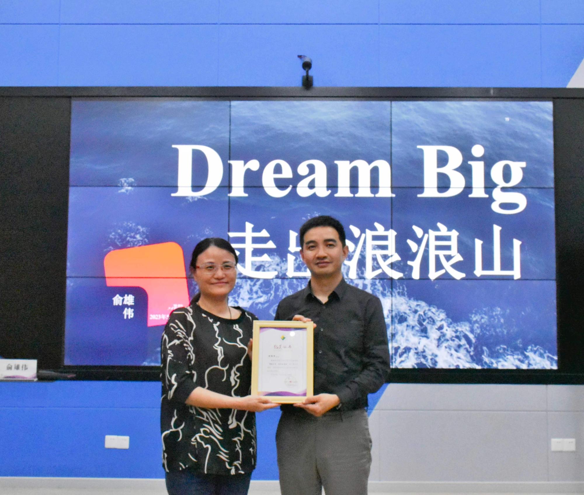 党委书记为主讲人颁发纪念证书,感谢俞雄伟先生对母院学生职业生涯规划和成长成才的倾心指导。