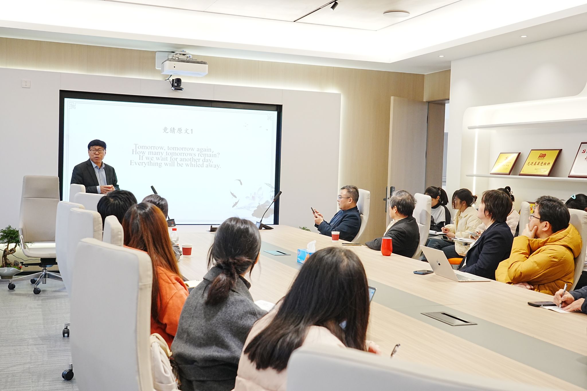 在翻译理论方面,赵教授提出了“逼近原则”,强调译文应在形式、内容和文学性上尽可能贴近原文,做到形神兼备。他以“明日复明日,明日何其多”等诗句的翻译为例,展示了如何通过精准的字词选择和巧妙的句式转换,在英语中精准呈现原文的韵味与意境,让听众深刻理解了这一原则在翻译实践中的应用。