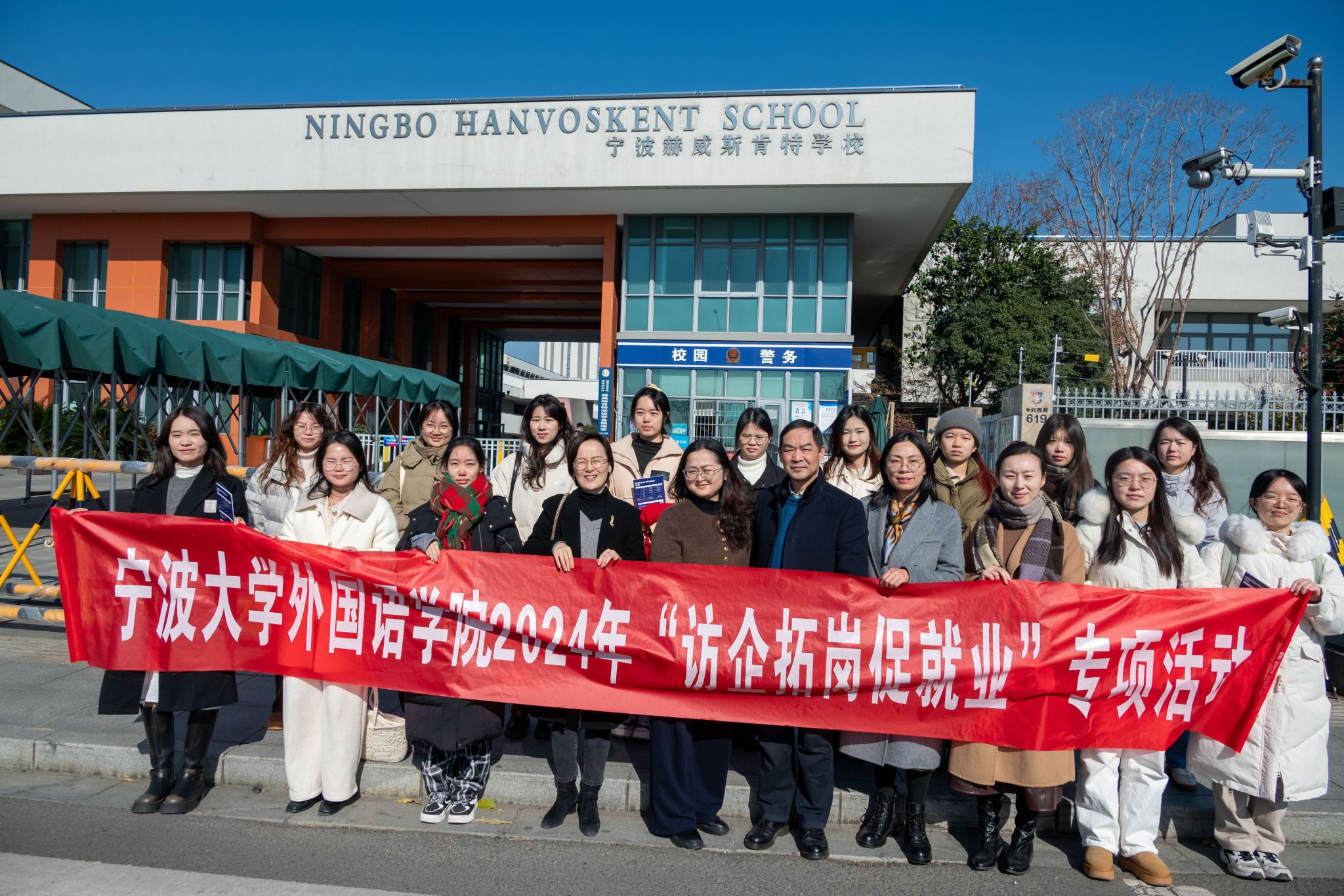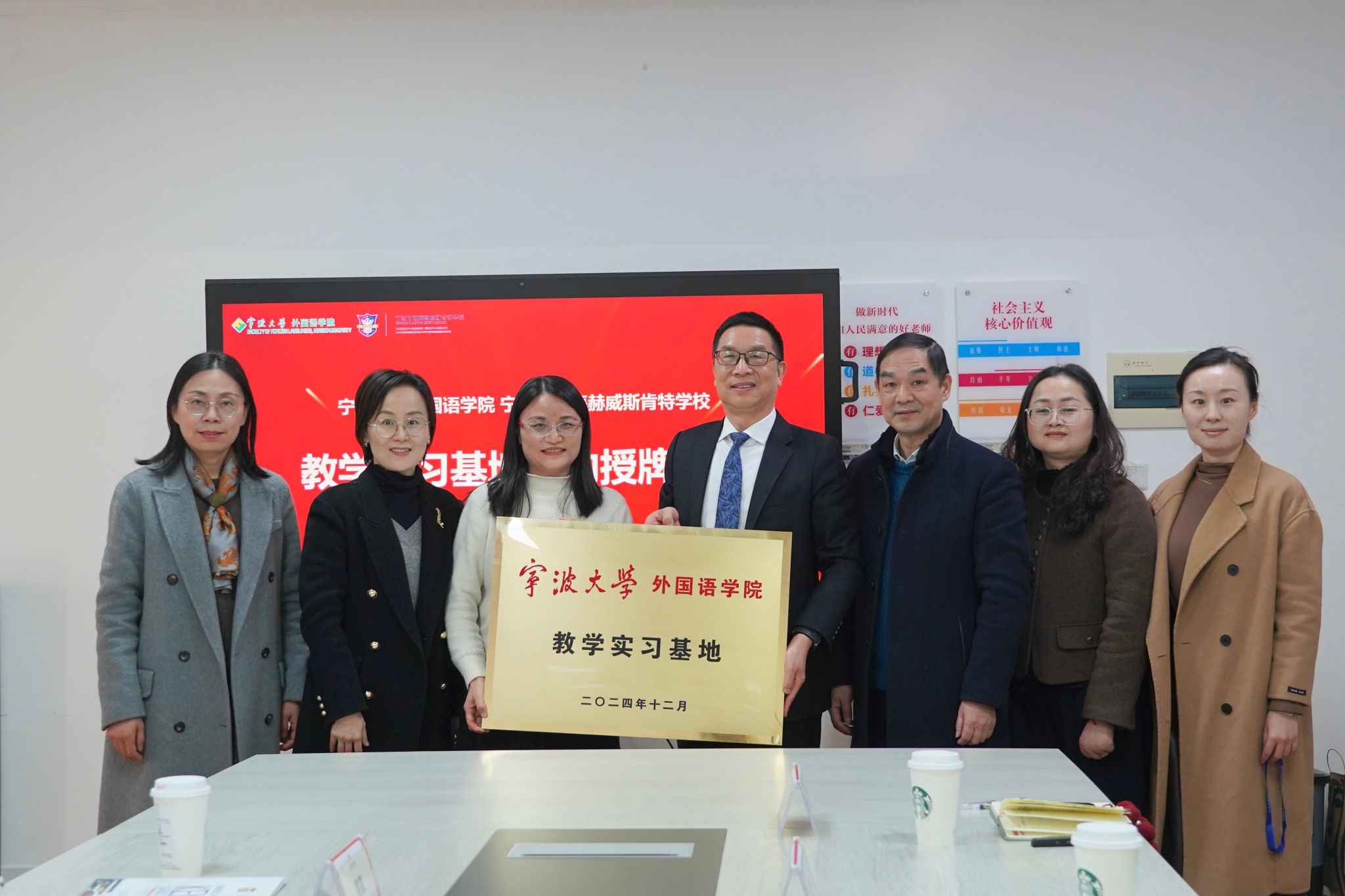 党委书记翁华星、党委副书记胡佳、英语系副主任李奕、学生代表等二十余人赴宁波市镇海赫威斯肯特多米体育网