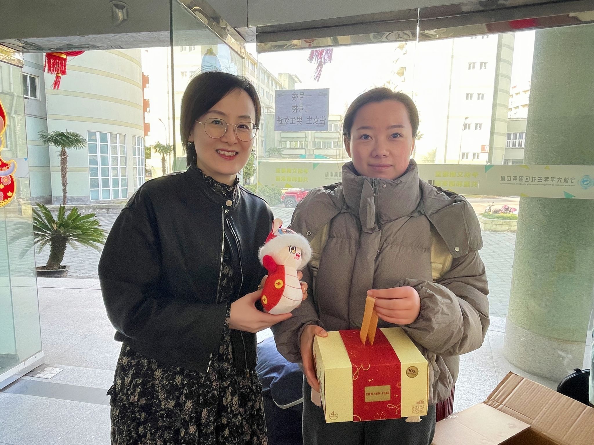 老师还向同学们发放了暖心礼包,既有蛇年吉祥物玩偶,又有曲奇饼干新年礼盒,传递了多米体育网