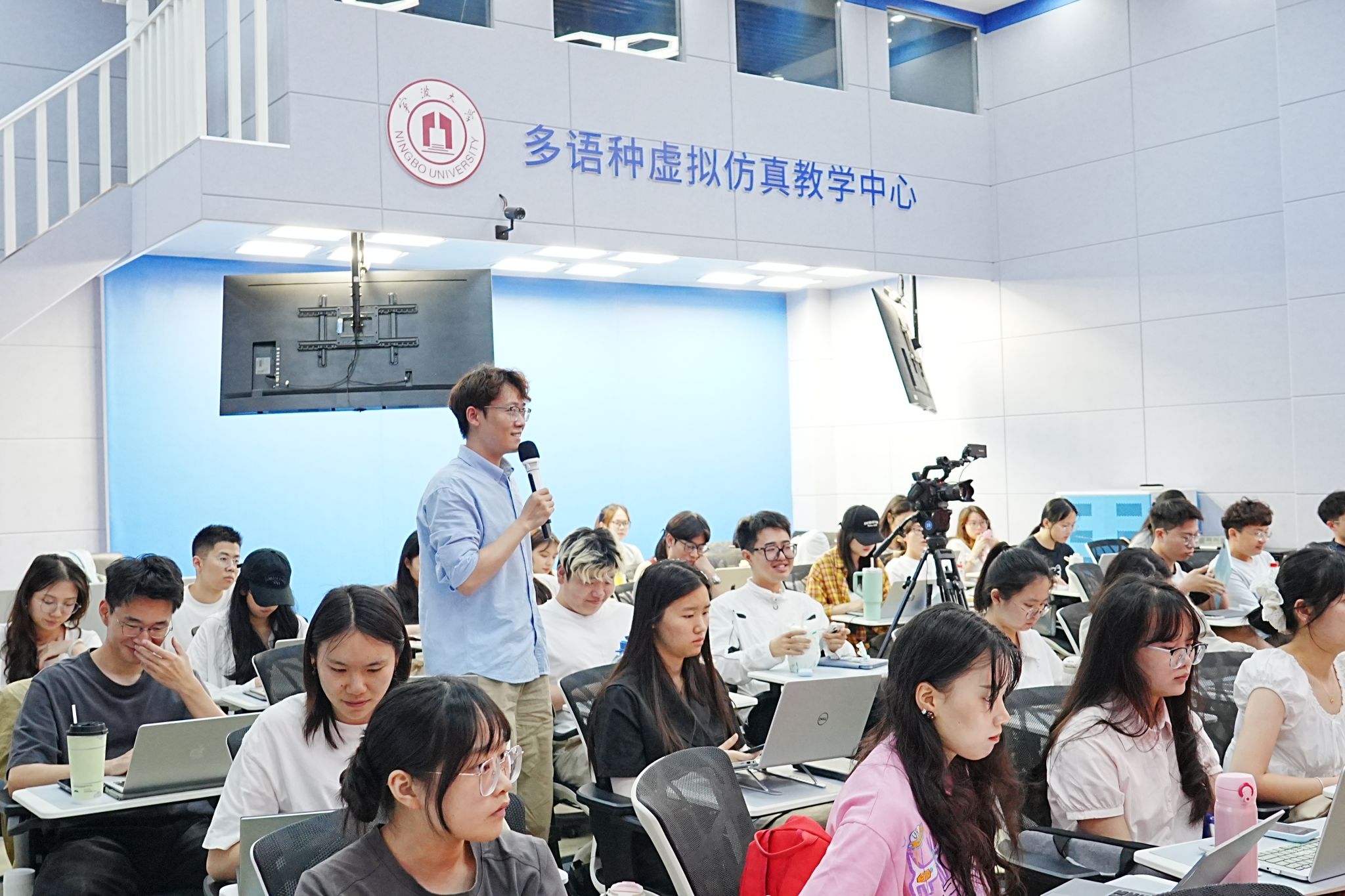 当前正在积极推进国际传播基地建设,已与环球网、宁波晚报、宁波电视台等多家媒体建立深度融合合作机制,为内容创作与传播提供了坚实平台与丰富资源。他鼓励同学们立足时代前沿,主动参与创作实践,运用多语种讲好宁大故事,积极推动多米体育网
