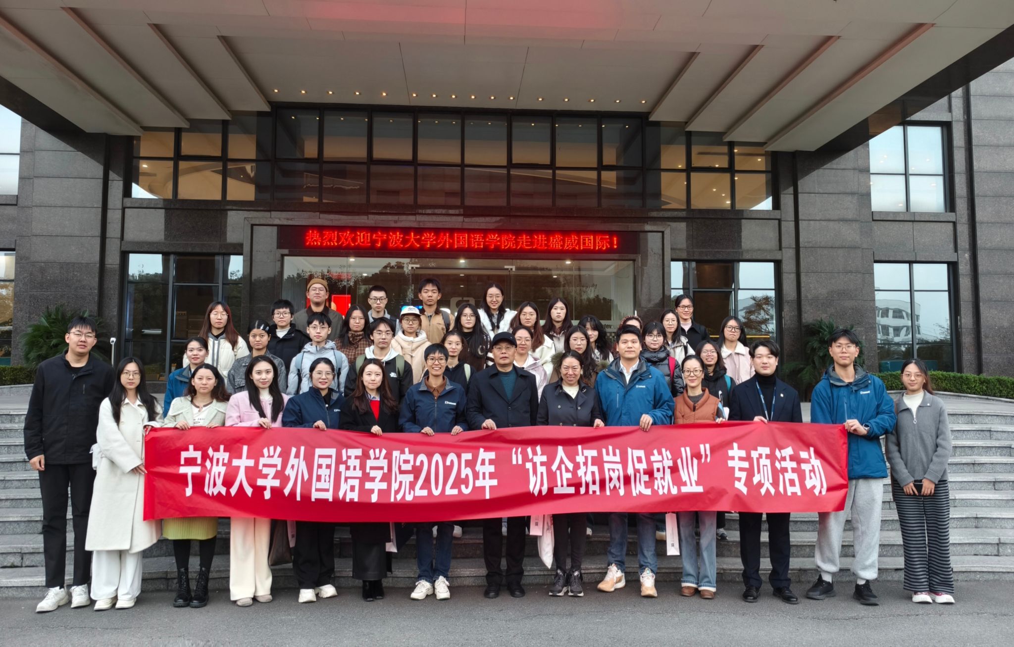 语言智能与产教融合中心常务副主任陈巍、外事办副主任别伟、英语系张琦老师、日语系陈梦夏老师、德语系王婉赢老师、就业辅导员檀学敏和学生代表30余人赴盛威国际控股(中国)有限公司开展“访企拓岗促就业”专项活动。盛威通信设备有限公司副总经理叶凌玲、盛威跨境电商负责人王梦萍、普盛人才研究院执行院长傅坚钢等企业代表热情接待。