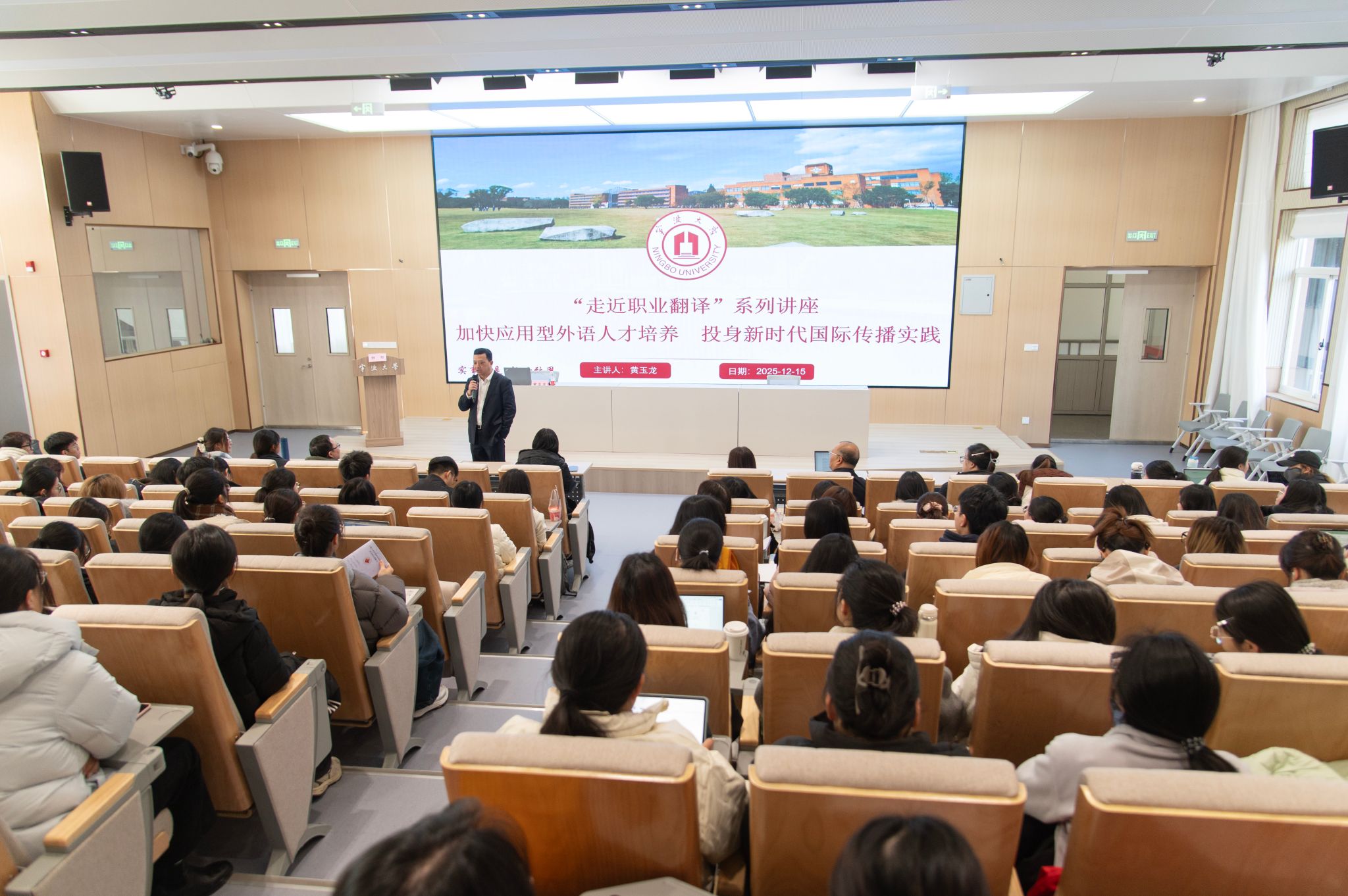 黄玉龙院长在主题发言中强调:“翻译的核心使命是国际传播。我们要推动‘翻译+传播’一体化发展,培养既懂外语、更懂传播的复合型人才。”他建议师生深入挖掘宁波“书藏古今、港通天下”的城市文化资源,通过“人工编辑先行、人机协同互补”的实践模式,提升服务地方国际传播的能力。