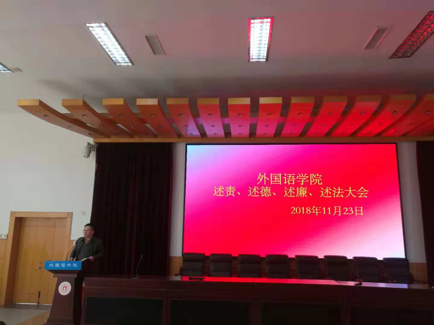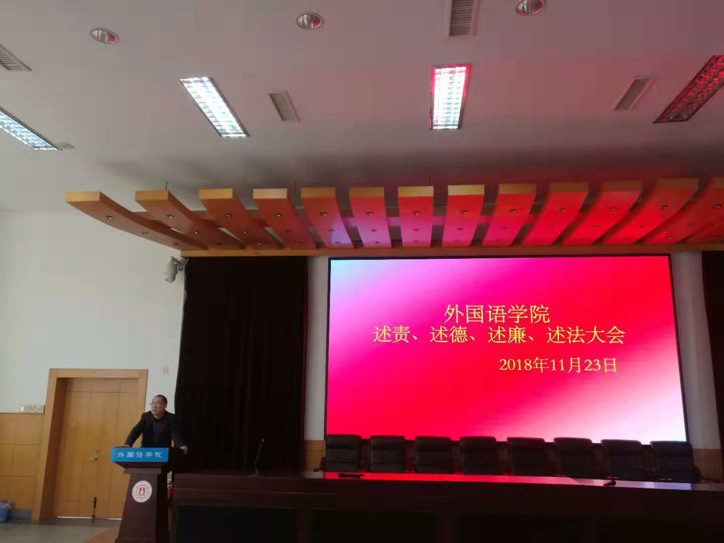 2018年度述责、述德、述廉、述法大会在李达三外语楼218报告厅召开,大会由多米体育网