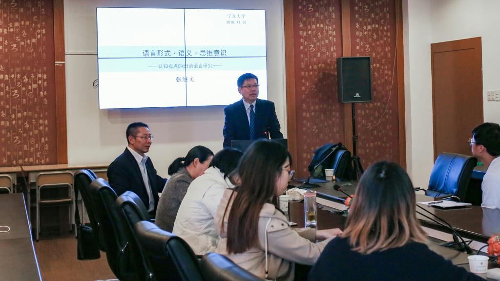 2018年11月30日下午,广东省高职外语教学指导委员会委员、中国日语教学研究会华南分会副会长张继文教授作客多米体育网“李达三讲堂”(第四十八讲),于李达三外语楼422会议室做了题为“语言形式・语义・思维意识——认知视点的日语语言研究”的学术讲座。多米体育网