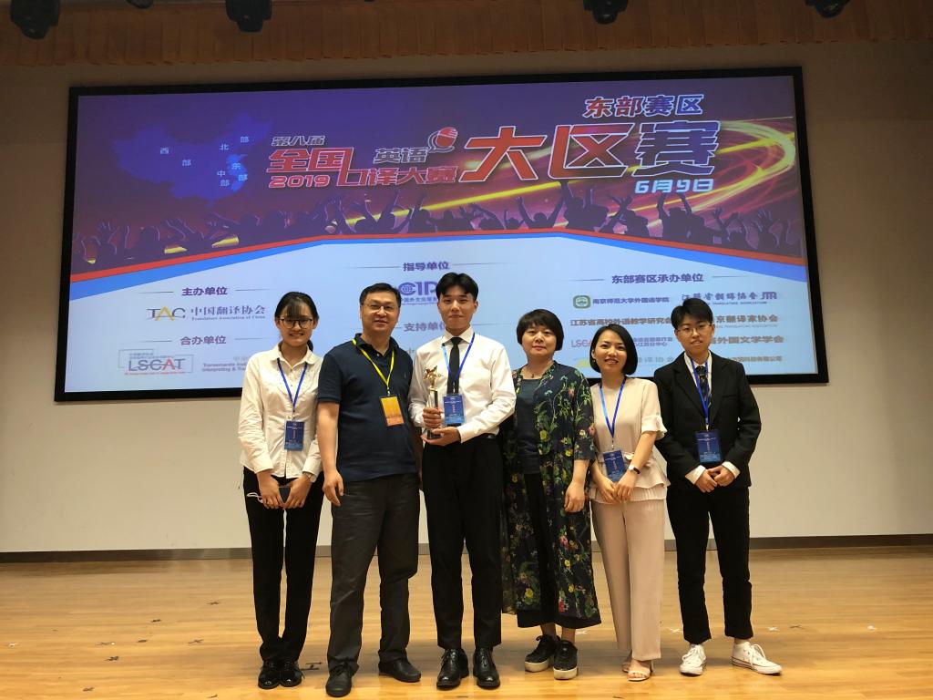 英语系2016级祝涌峰以总分第一的成绩夺得东部赛区冠军,并荣获“口译之星”称号,为宁大学子首次获此殊荣。此外,英语系2016级袁帆和2017级翻译硕士研究生刘胜兰获得二等奖,英语系2016级孙宇彤获得三等奖。