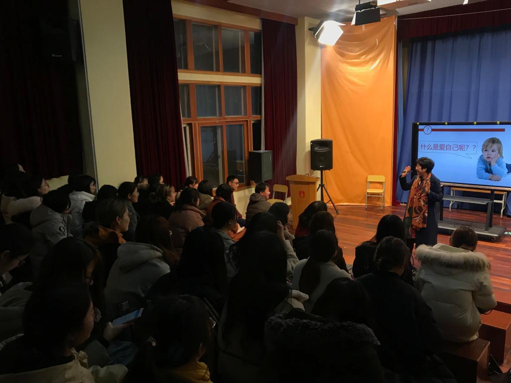 沙龙伊始,卢美芬阐释了自己阅读《非暴力沟通》一书的初衷,并抛出“什么是爱自己”的问题。随后,卢美芬通过引用各类书籍中的典例和诸多专业学理观点,依次探讨了“什么是爱自己”“为什么爱自己”“怎么爱自己”三个问题,为在场师生揭示“爱自己”的本质,并提出“一切现实以修身为本,改变世界从改变自己开始”的观点。在沙龙中,卢美芬还反复强调人际关系是幸福的决定性因素,因此要学会管控自己的情绪,了解他人需要,做到感同身受。最后,卢美芬用“不将就,就是爱自己”作为讲演的结语。