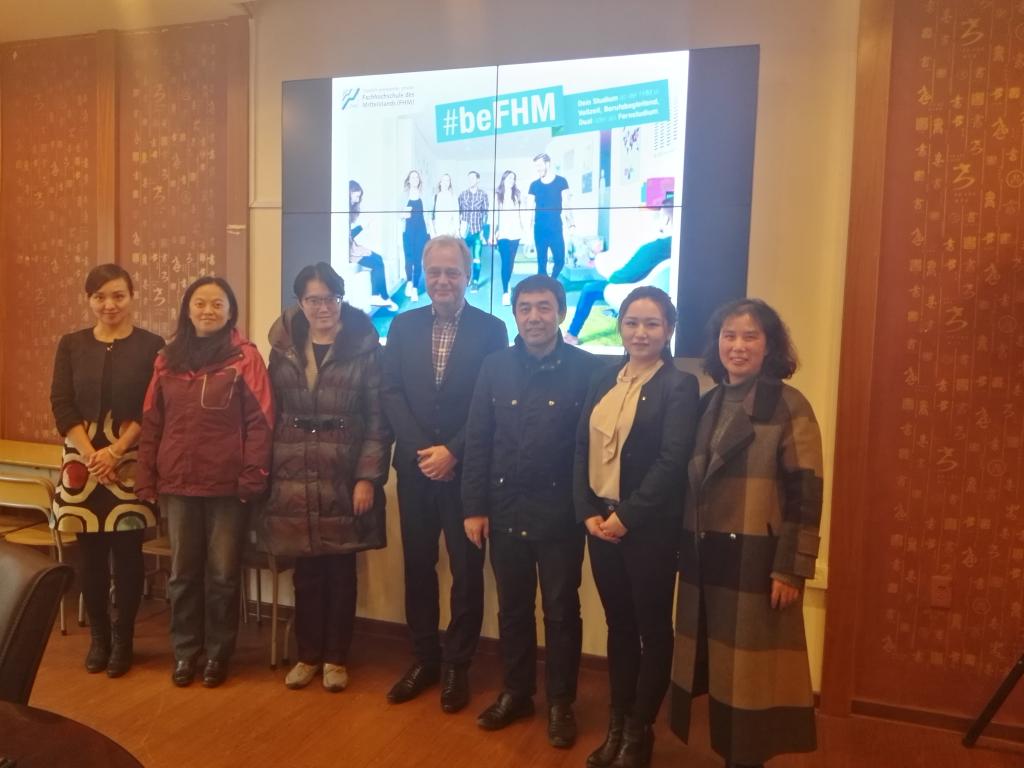 2018年12月11日,德国中等企业应用技术大学副校长Fischer教授、项目主管孙阳女士及季芳老师一行来访多米体育网