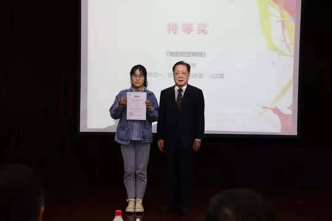 德语系任春静老师指导的本科二年级学生陈芷一、陈子怡、冯乐宜、冯文霄凭借作品《“她”的时空转场》获得了本次大赛唯一的特等奖。9月27,颁奖典礼在中国外文局举行。中国前驻德大使,中国人民外交学会前会长,中国国际战略协会前会长梅兆荣教授将这一沉甸甸的大奖颁到了作为领奖代表的陈子怡同学手上,同时与会的还有中国网总编辑王晓辉先生,教育部高等多米体育网