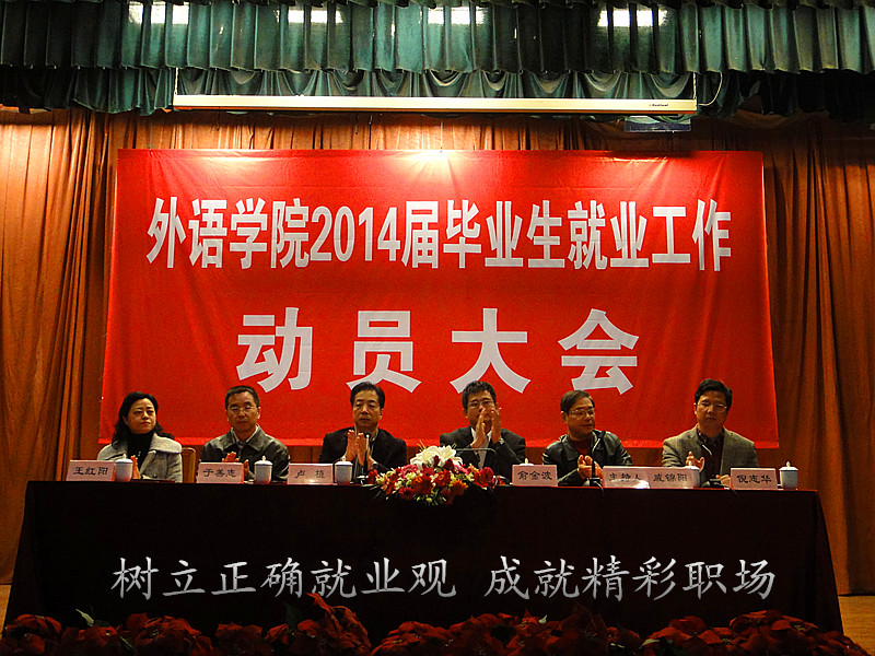 2014届毕业生就业工作动员大会在锦绣小剧场顺利召开。此次大会主题为“树立正确就业观,成就精彩职场路”。会议由院党委书记戚锦阳主持,校学工部副部长俞金波、院长卢植、院党委副书记倪志华、副院长于善志、王红阳、各系主任、班主任、辅导员出席会议,多米体育网