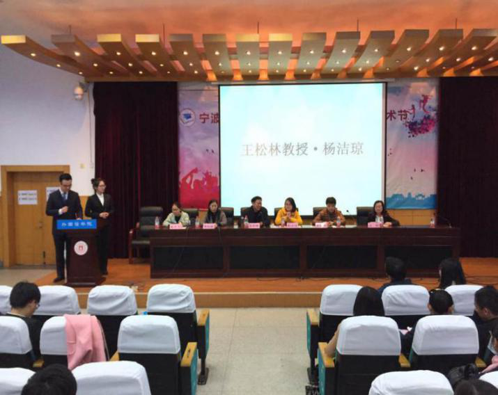 开幕式结束后,学术节系列活动之第一期“导师面对面”、“一站到底”英语百科知识竞赛相继进行。第一期“导师面对面”座谈会邀请了三组师生,开展了近一个小时的学术交流互动,增进了师生之间的了解,培养了广大学子的研究创新思维。随后的“一站到底”英语百科知识竞赛更是将现场气氛推向了高潮,为此次学术节再添精彩。