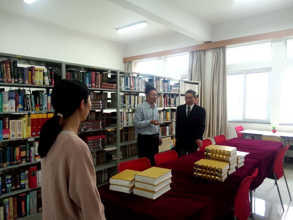 资料室捐赠了图书《大百科事典》(共16卷),双方就设立“西村一仁教授赠书专柜”等相关事宜展开了交流讨论。