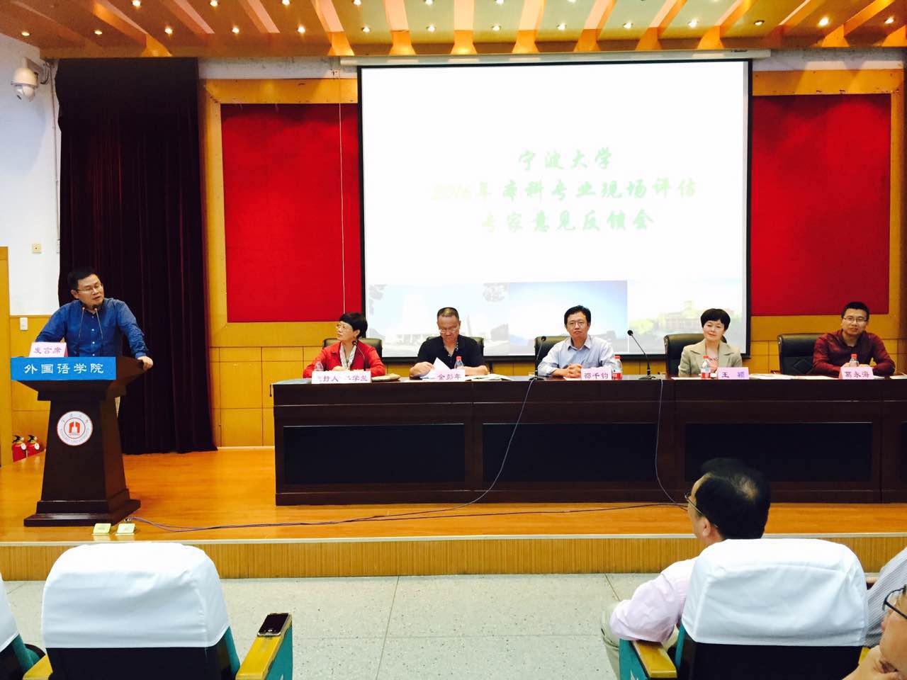 2016年本科专业现场评估专家意见反馈会在李达三外语楼218报告厅顺利举行。副校长邵千钧出席会议,教务处处长李学兰主持会议。