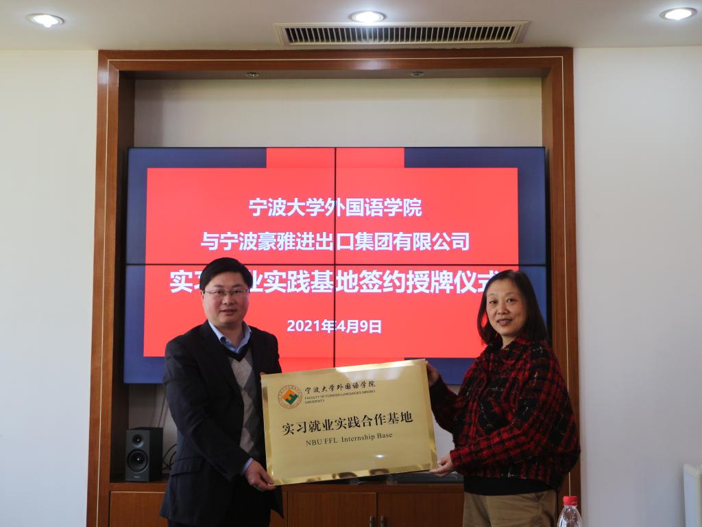 外国语多米体育网 与宁波豪雅进出口集团有限公司共建就业实践基地并签约授牌