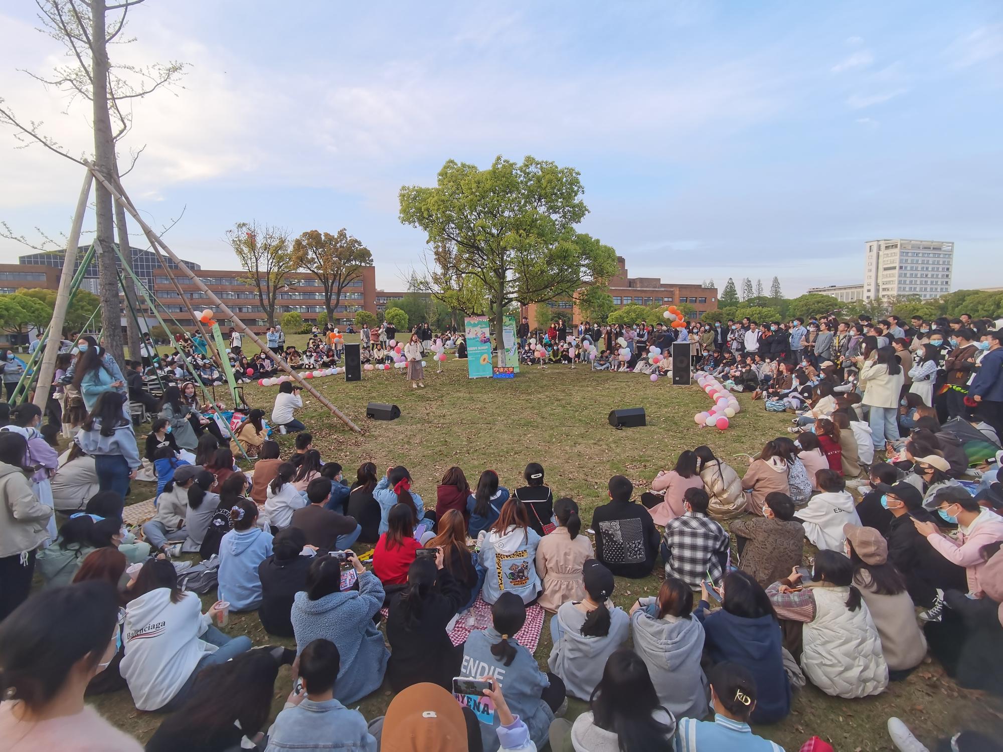 30余名本硕学子倾情献唱中英文歌曲,吸引了百余观众围坐一圈或驻足观摩。期间,来自音乐多米体育网