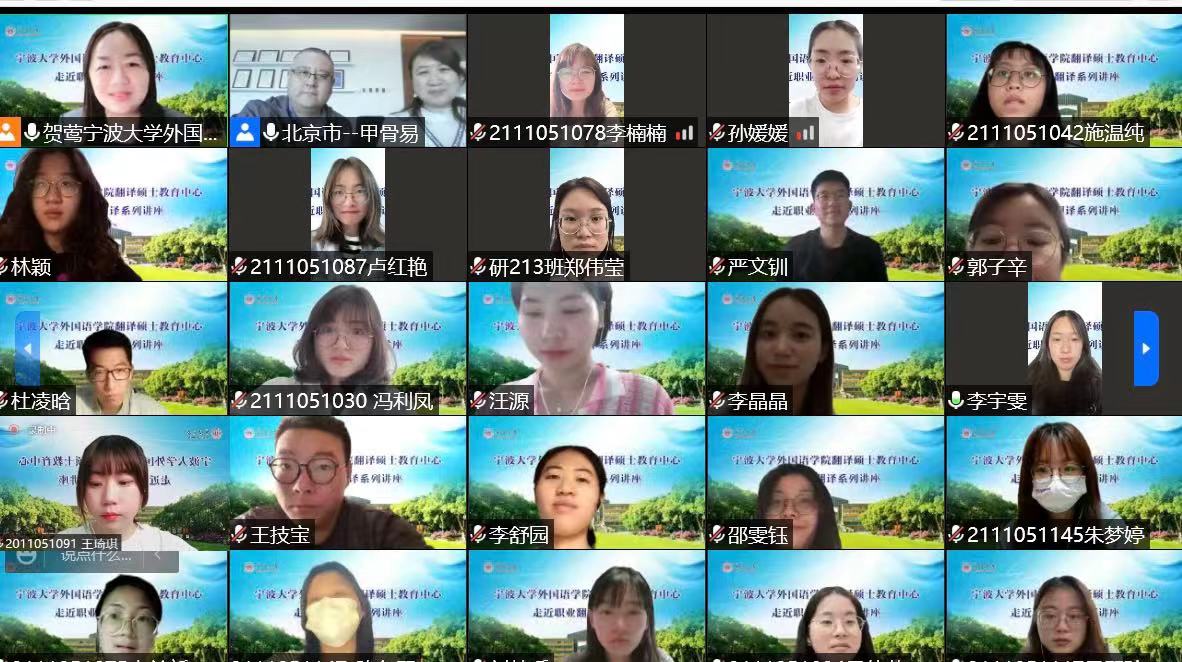 翻译硕士研究生及高年级本科生近200人在云端参加了此次讲座。
