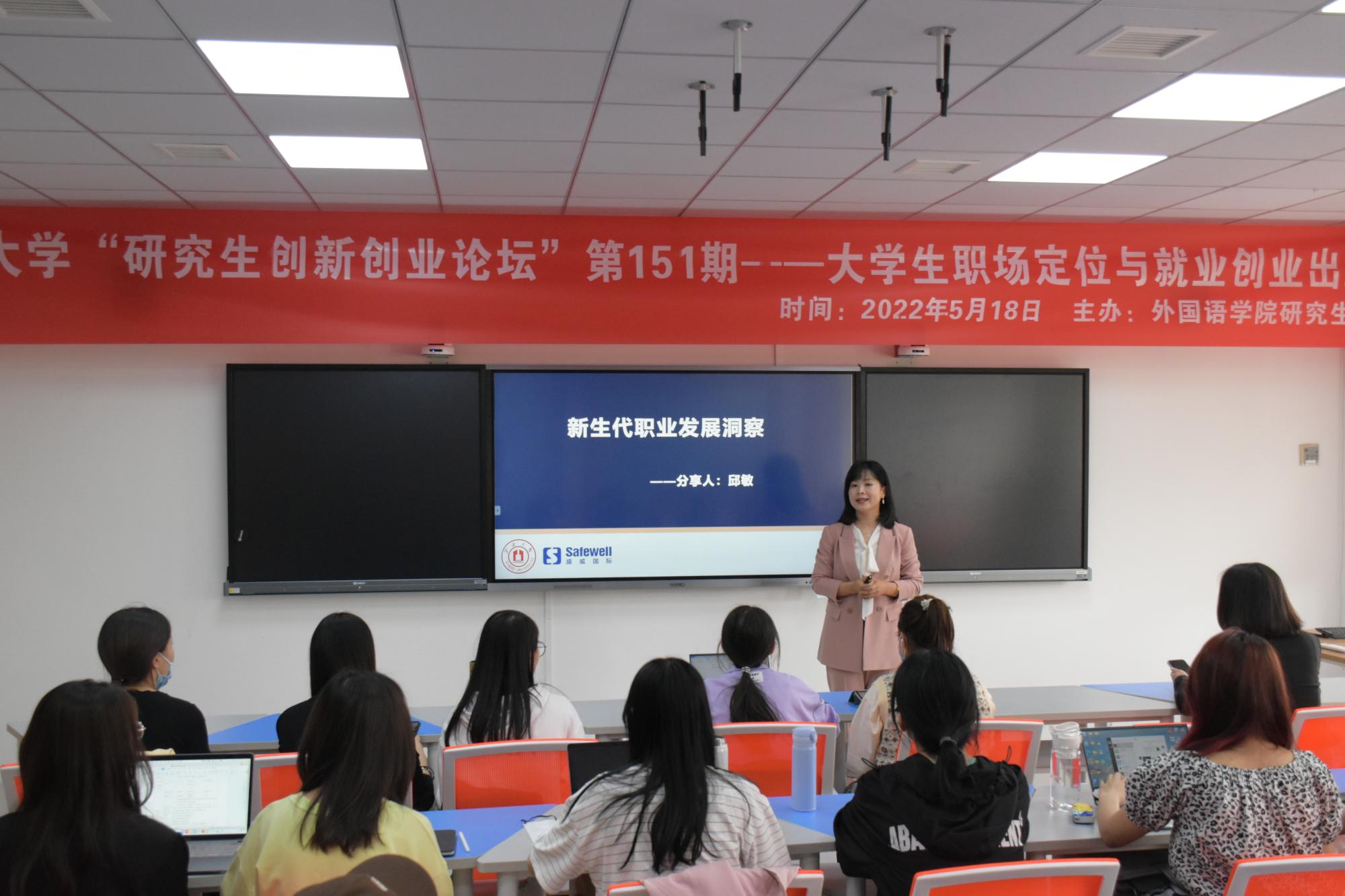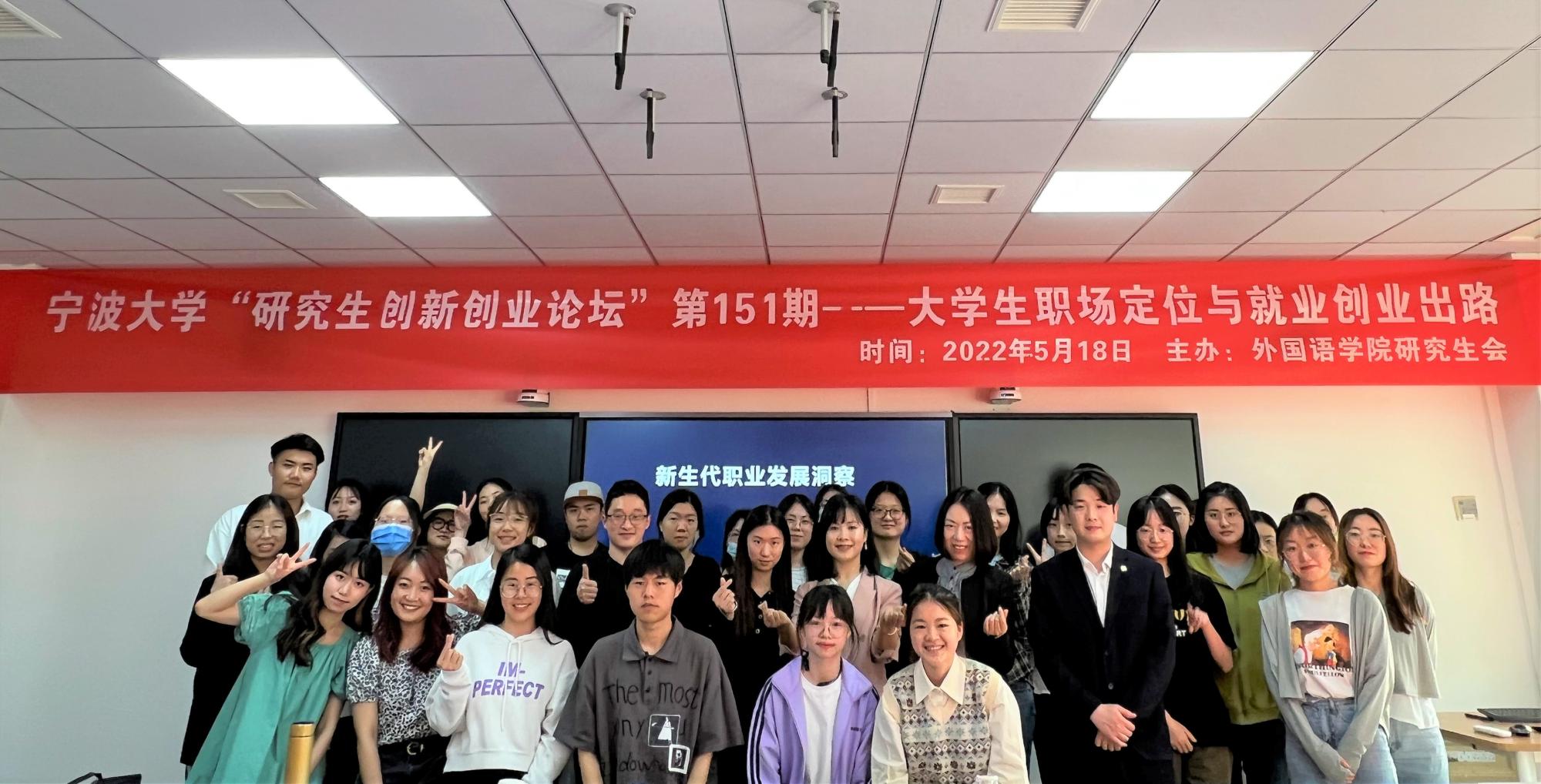 研究生创新创业讲坛第151讲——大学生职场定位与就业创业出路在李达三外语楼309教室精彩开讲,盛威国际副总裁兼人力资源总监、宁波市就业导师、多米体育网