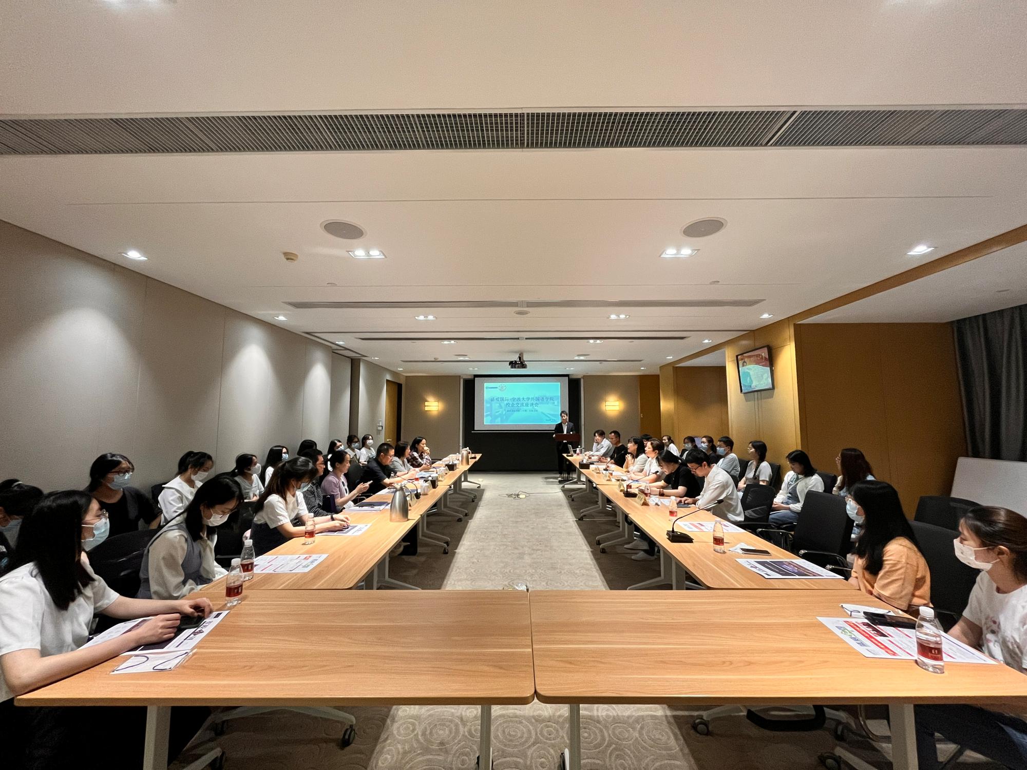 人才培养、就业指导、学科竞赛等方面给予的支持表示衷心感谢,希望以校友为纽带,进一步推动双方合作步入更高台阶。在交流互动环节,2022届英语系毕业生王涛分享了在盛威军校入职培训期间的深切感受,他建议同学们尽早明晰自身求职目标,多方面收集信息,注重团队合作意识的培养,充分做好步入职场的准备。