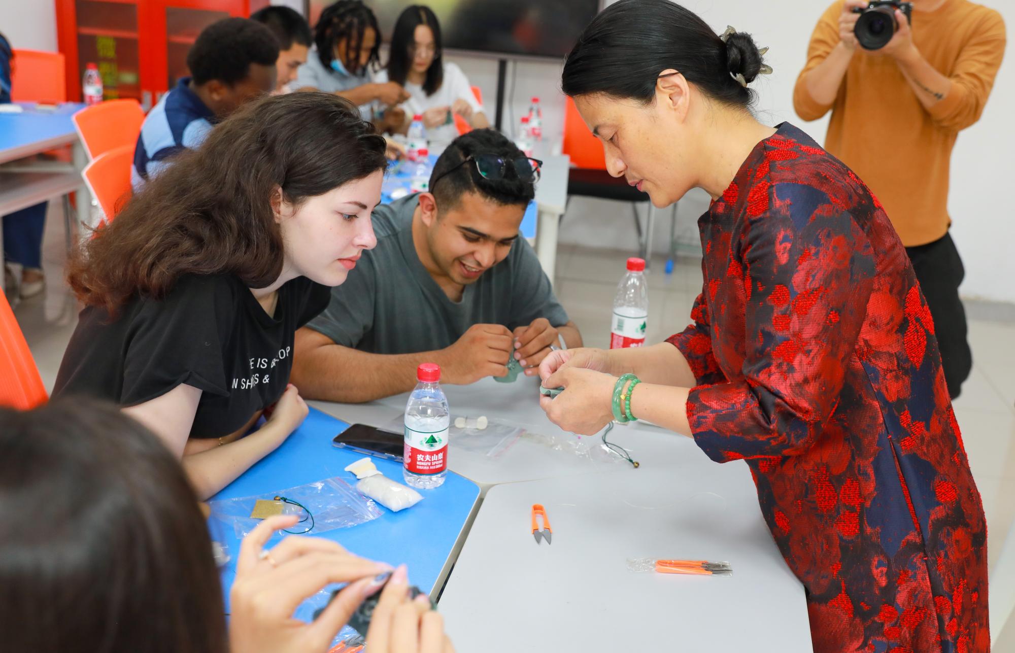 小小的香囊,散发着清雅的香气,承载着悠久的文化。在宣讲团成员深入浅出的双语讲解下,来自俄罗斯、土耳其、阿拉伯、阿塞拜疆、乌兹别克斯坦等国的留学生更充分地了解了中国传统节日、世界非物质文化遗产——端午节的起源和习俗、以及爱国诗人屈原的故事。来自卢旺达的Abraham表示,这是他来到中国的四年来第一次认识屈原,屈原的廉洁和正直让他十分钦佩。来自阿塞拜疆的Farhad说,“我很喜欢端午节,特别是端午节包粽子的习俗,现在我知道了这个习俗的由来,觉得这个节日更不一样了。”