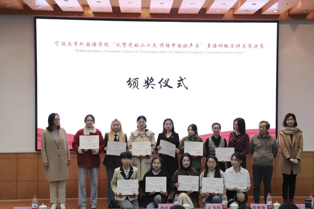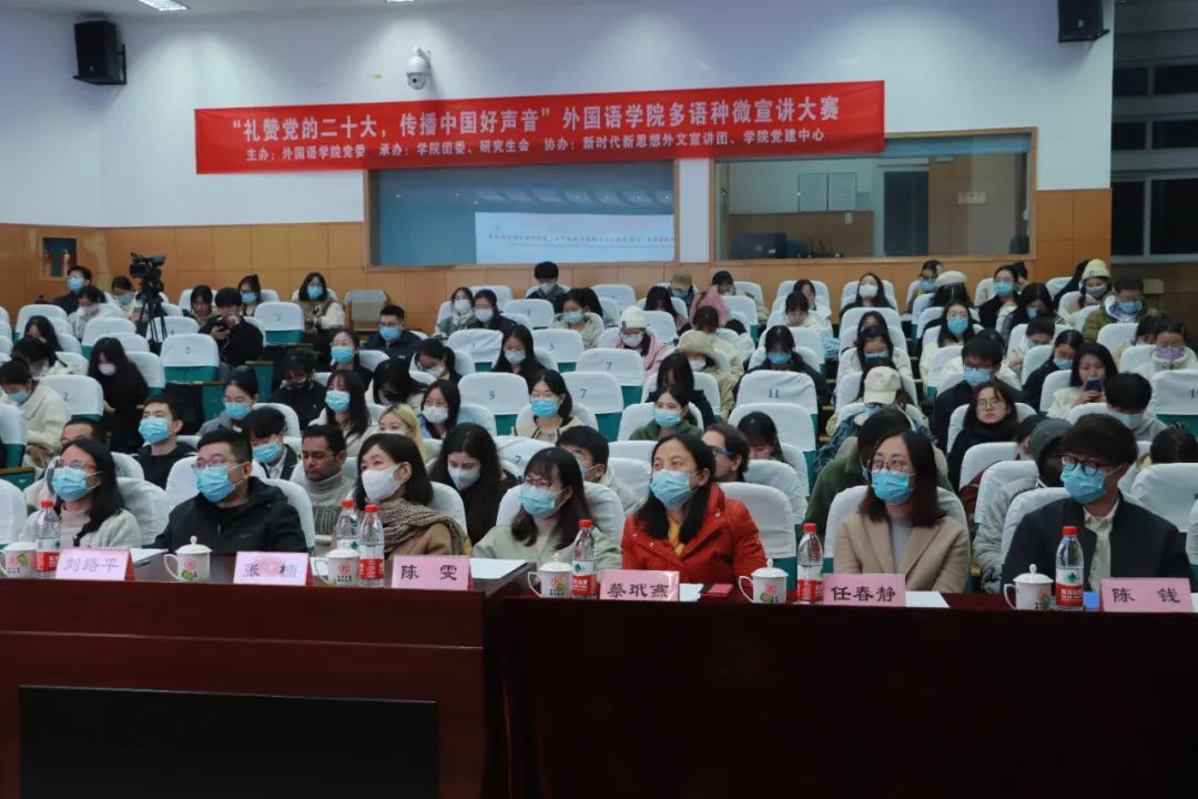 12月9日晚,“礼赞党的二十大 传播中国好声音”多语种微宣讲大赛决赛在李达三外语楼举行。外国语多米体育网