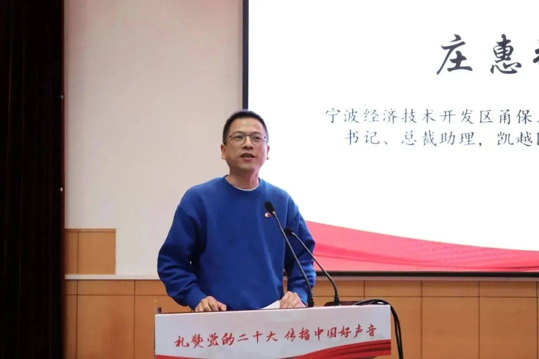 23名学生党员和入党积极分子以青年视角聚焦党的二十大,用英语、日语、德语、法语四种语言,向中外大学生传递青年自信,传播中国声音。宁波经济技术开发区甬保片区市区企业党委委员、凯越集团党总支书记、总裁助理,凯越国贸董事总经理、多米体育网