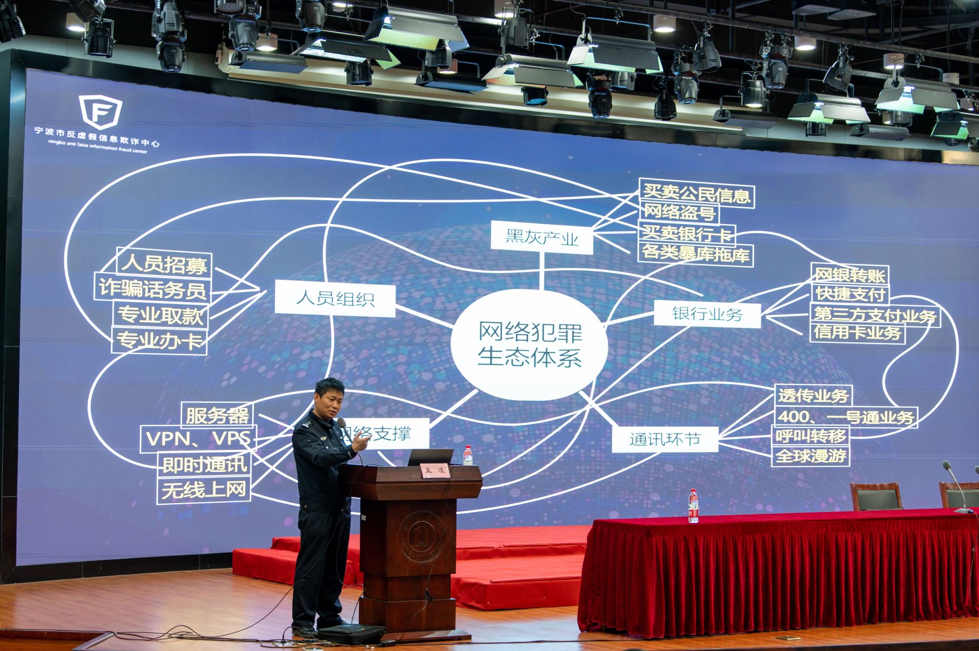邀请宁波市反虚假信息欺诈中心金牌宣讲员、宁波市公安局江北分局文苑派出所王凌警官,在真诚图书馆报告厅为多米体育网