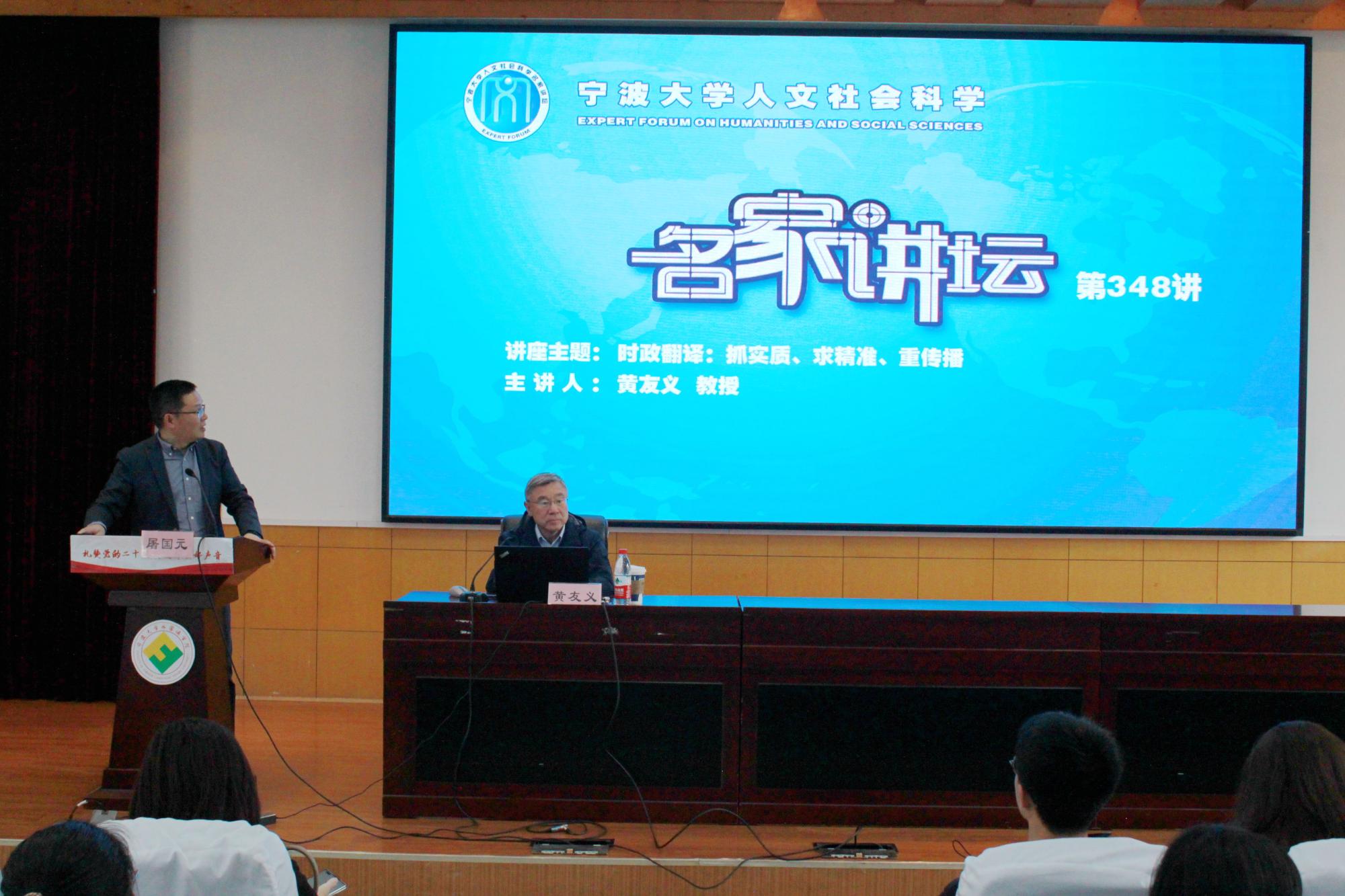 在题为“时政翻译:抓实质、求精准、重传播”的讲座中,黄教授紧贴国家话语翻译实战,立足讲好中国故事,从“透过字面译实质”“追根问底求精准”“国际传播重效果”三个方面,向在场师生详细介绍了新时代语境下时政翻译遇到的全新问题以及解决思路。黄教授指出,在时政翻译过程中,尤其是中译外过程中,译者要站在目标受众的思维角度考虑用词,将国际传播的效果作为翻译标准和最终目的,做到刨根问底,精益求精。