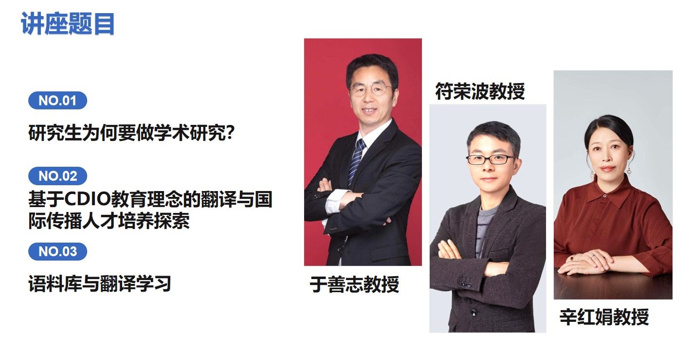 学位点的总体情况。王松林教授、于善志教授、辛红娟教授、符荣波教授等多位知名导师应邀做主题讲座,分享最新的学术成果和研究见解。讲座内容涵盖外语专业的当前挑战与机遇、外国文学的跨学科研究、研究生学术研究的重要性、翻译与国际传播人才的培养,以及语料库在翻译学习及研究中的应用等学术议题,不仅内容丰富、视角独特,且紧贴时代脉搏,引发了同学们积极的思考与热烈讨论。