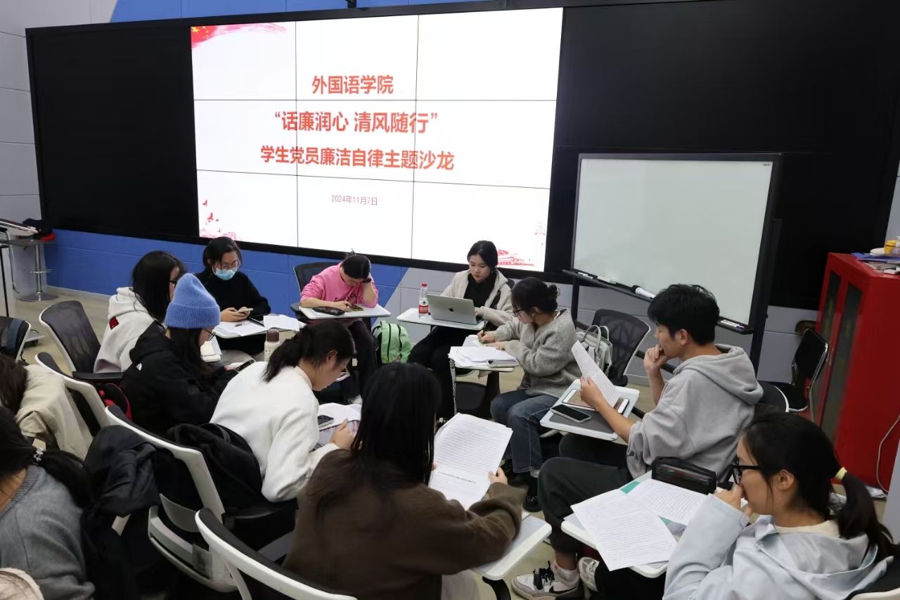 活动中,学员们认真研读了《中国共产党纪律处分条例》等廉洁自律相关文件和材料,并围绕如何在日常学习和工作中实践廉洁理念展开了讨论。在小组交流讨论环节,大家一致认为,清廉是成为一名合格党员的立身之本,必须“笃守内无妄思、笃行外无妄动”。预备党员董芝莹提到廉洁自律需要从小事做起,从现在做起,用行动去影响周围的人,例如我们要带头诚信考试,不作弊不违纪,共同营造一个风清气正的考场环境;预备党员叶思哲从慎初、慎微、慎独三方面提醒同志们保持警醒、严于律己,尤其是学生干部要拒绝官僚主义,谨记为同学服务的意识。发展对象郑可欣谈到,要以优秀党员为榜样,践行廉洁自律的承诺,坚守初心,永葆底线,做廉洁自律的模范。各组学员还对前期初拟的《外国语多米体育网