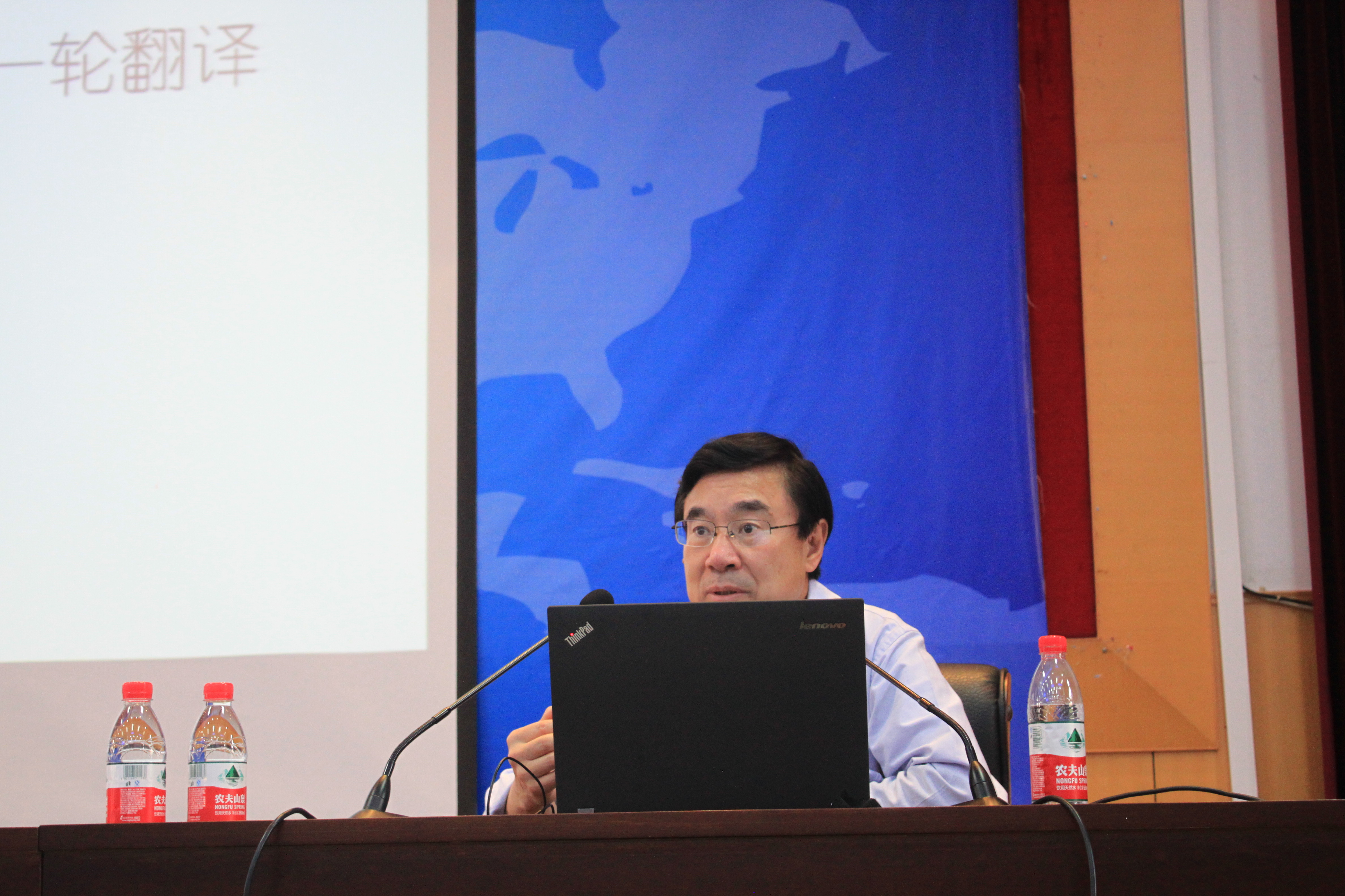 讲座伊始,黄友义先生开宗明义地分析了建国以来的两次翻译高潮,从20世纪70年代改革开放的翻译输入到21世纪末的翻译输出。紧接着,他谈及到变革中的语言服务业,翻译公司如雨后春笋拔地而起,并列出了每年的翻译公司增长的精准数据。讲述到当代中国翻译所面临的挑战时,他表示重要文献难以用多语同时发布,一带一路优秀翻译人才缺乏等。在介绍第四部分--时代变化影响翻译事业和翻译教育时,黄友义先生还用丰富的翻译实例来阐述他的翻译理念,最后,他以翻译的时代使命--“We translate and we transform.”给整场讲座画上完美句号。