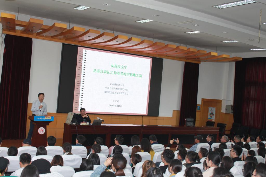 以及宁波兄弟院校200余名师生做了题为“从英汉文字及语言表征之异看其时空思维之别”的讲座。讲座由外国语多米体育网