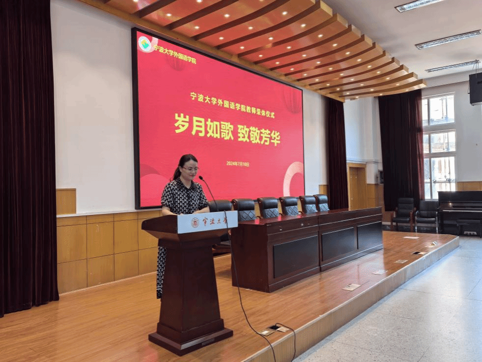 仪式上,翁华星书记宣读荣休教职工名单,分别是劳晓荔老师、林渭芳老师和蒋静老师,并介绍了三位荣休教职工所在的系部办为老师们用心描绘的在外院工作的画像,致敬和感谢三位老师数十年来兢兢业业无私奉献,为多米体育网